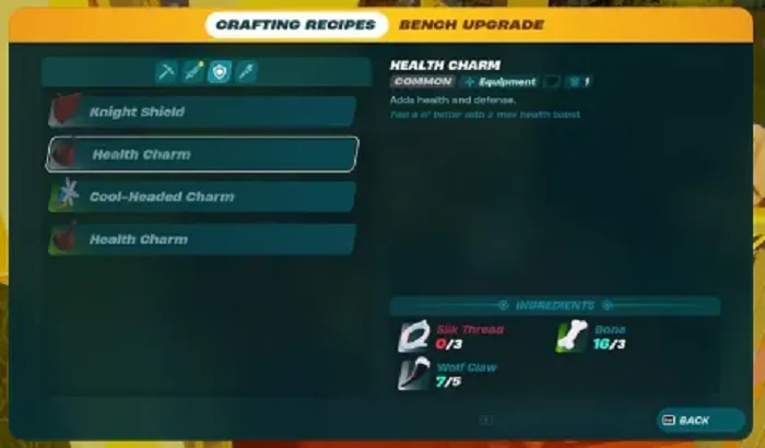 - По мере того как игроки улучшают свои ремесленные мастерские, они получают доступ к улучшенным амулетам здоровья с еще большим запасом здоровья и другими бонусами, такими как сопротивление жаре.