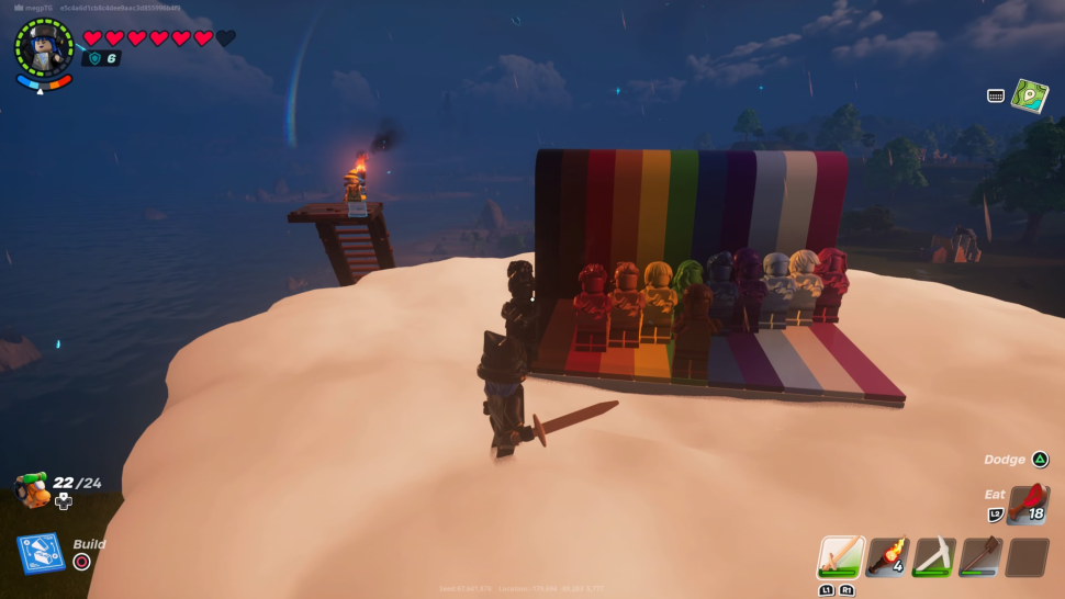 Радуга - редкое явление в Lego Fortnite, но ее легко заметить, когда она появляется, потому что ее хорошо видно в небе. При появлении они также издают звук, похожий на раскаты грома, так что прислушивайтесь.