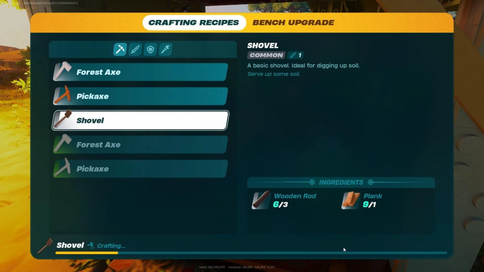 - Для получения почвы создайте лопату на верстаке и вскопайте ее.
