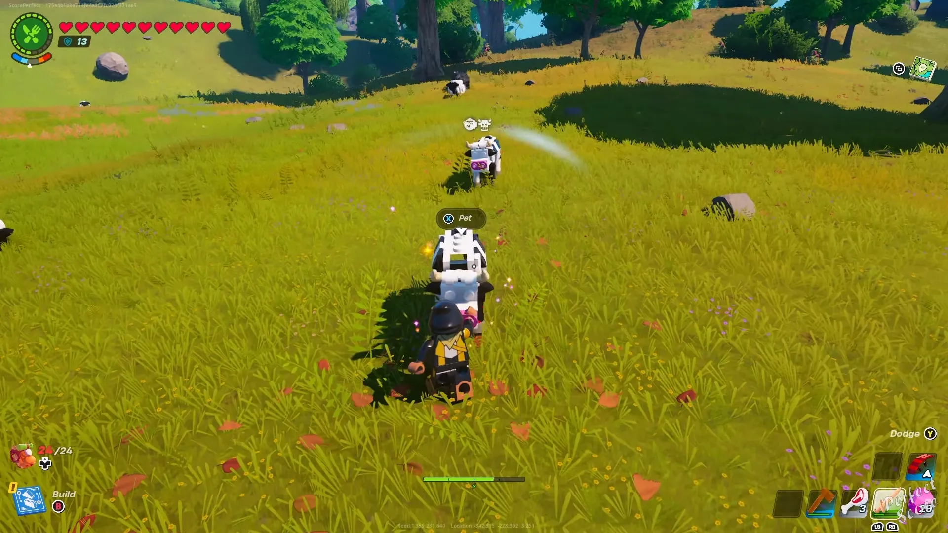 - Найдите корову и позвольте персонажу LEGO погладить ее, в результате чего корова сбросит 1 молоко.
