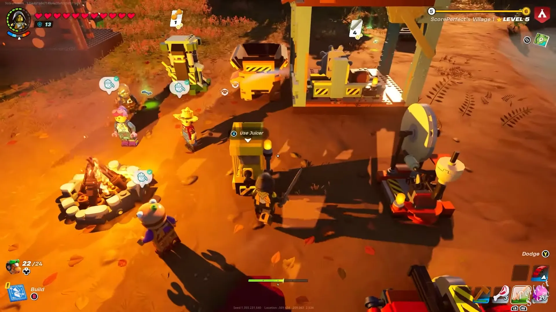 Вернувшись в деревню, постройте соковыжималку, используя режим строительства LEGO Fortnite, следуя прилагаемым инструкциям.