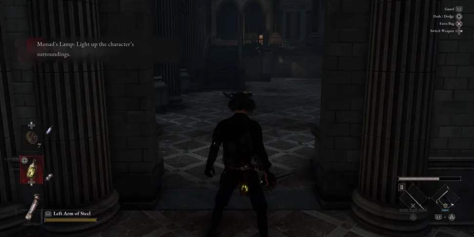 Лампа Монада, как следует из названия, - это лампа, которую можно использовать для освещения темных мест. В Lies of P таких мест много, и бродить по ним без лампы Монада - не самая лучшая идея. Вокруг скрываются враги, и без лампы их невозможно увидеть. Первое темное место игроки встретят на станции Крат. В этой комнате есть два врага: марионетка с пистолетом и марионетка дворецкого.