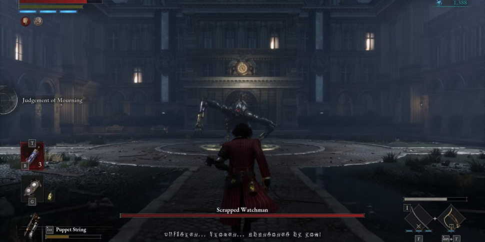 Атаки Scrapped Watchman быстры, но очень предсказуемы. Чтобы идеально блокировать все его удары, игроку придется запомнить время их нанесения. В качестве альтернативы можно уклоняться в сторону и наносить быстрый удар. Против Смотрителя можно использовать любое из доступных на данный момент оружий Lies of P, хотя от электрической катушки лучше воздержаться, так как босс наносит урон электричеством.