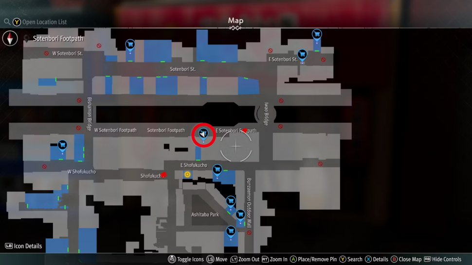 Расположение Окономияки в игре Like a Dragon Gaiden: The Man Who Er Erinth Name