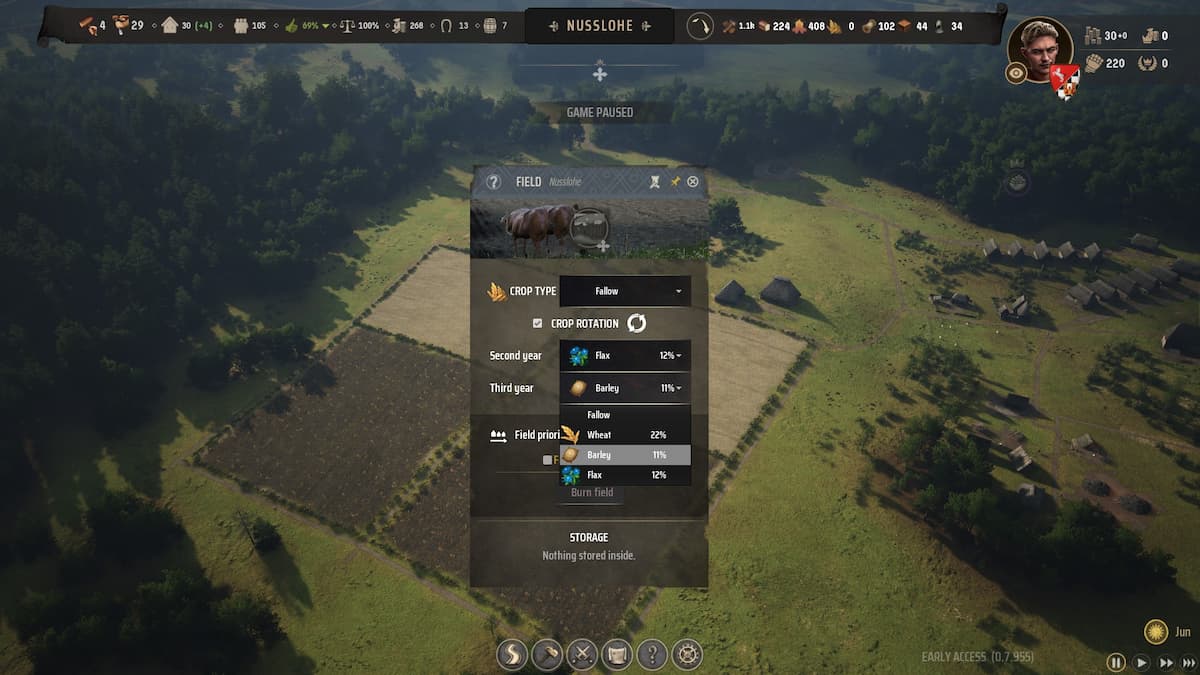Когда вы почувствуете, что хотите снова начать использовать поле, просто щелкните на нем и выберите нужную культуру. Имейте в виду, что хотя сезон сбора урожая, посева и вспашки приходится на осень, ваши люди сразу же начнут вспахивать пашню.