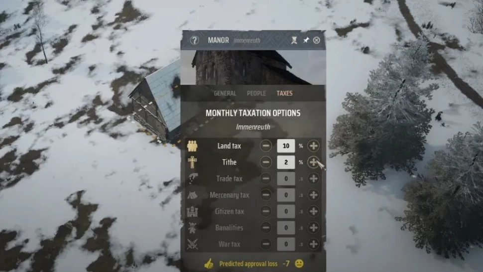 Чтобы начать собирать налоги, вы должны сначала создать поместье в своей деревне. Как только поместье будет построено, вы сможете открыть вкладку «Налоги» в интерфейсе поместья. Здесь вы сможете установить налог на землю - процент от регионального богатства деревни, который будет конвертирован в средства казны.