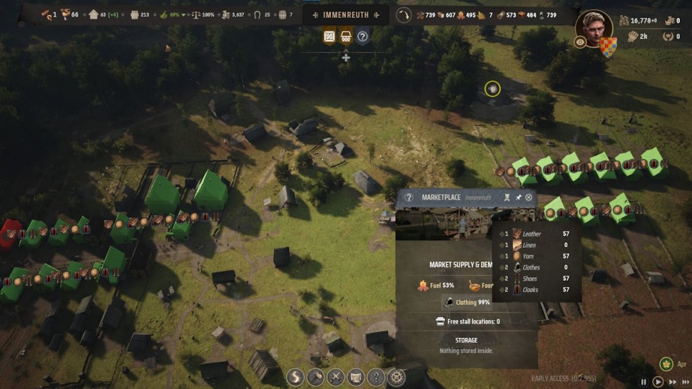 Если у вас не хватит припасов на каждого члена семьи, в городе возникнет дефицит, и жители не получат достаточного количества необходимых им товаров, будь то топливо, одежда или еда. Лучший способ иметь хороший рынок - наполнить его различными товарами. Если вы начинаете строить город в Manor Lords, главное - создать запасы одежды, дров и хотя бы двух продуктов питания первого уровня. Одежда первого уровня - хороший способ доставить жителям необходимые предметы, но со временем им понадобится одежда второго уровня, например плащи, обувь и одежда.