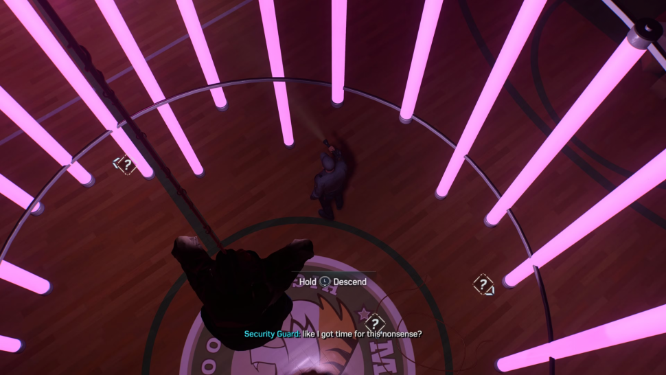 Теперь начинается хорошо знакомая игрокам стелс-секция. Задача Питера - отвлечь полицейских, чтобы они оставили охранника в покое. Используйте R3, чтобы просканировать возможные варианты, и с помощью Web-Shooters проткните воздушные шары в дальнем конце, чтобы отвлечь внимание.