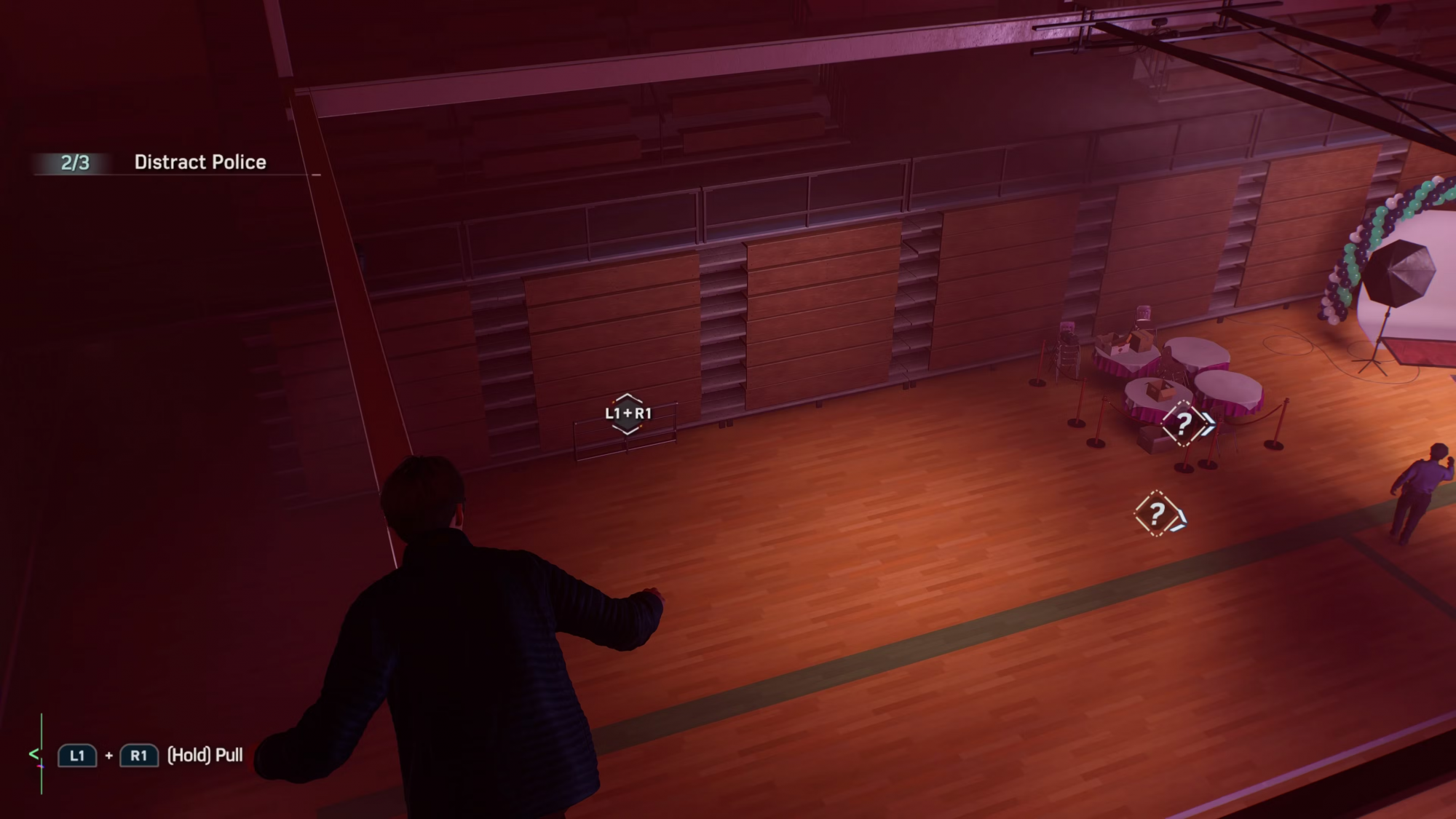 Теперь начинается хорошо знакомая игрокам стелс-секция. Задача Питера - отвлечь полицейских, чтобы они оставили охранника в покое. Используйте R3, чтобы просканировать возможные варианты, и с помощью Web-Shooters проткните воздушные шары в дальнем конце, чтобы отвлечь внимание.