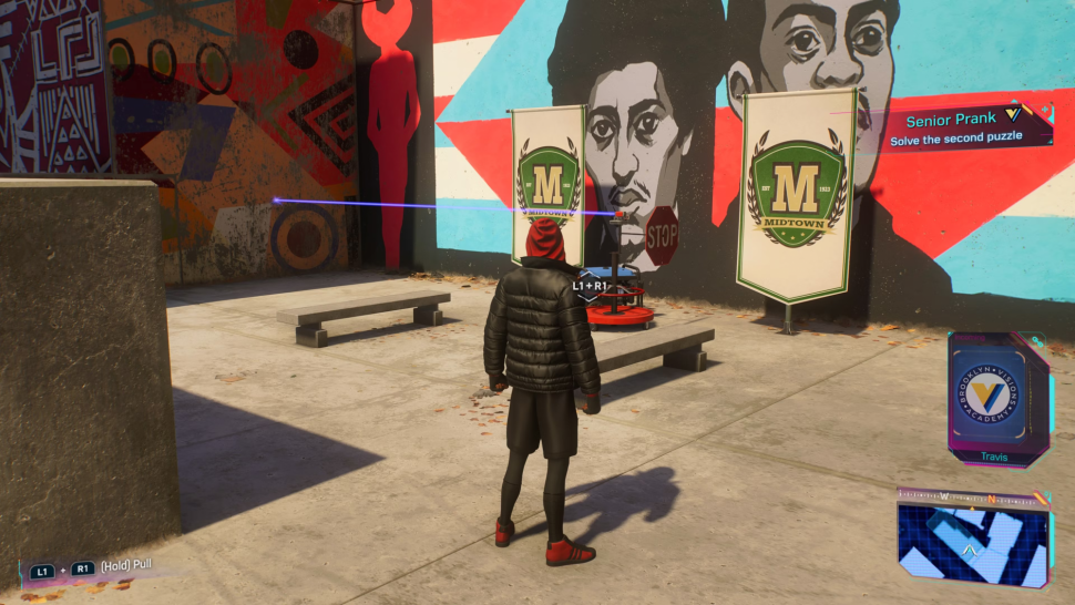 В начале Marvel's Spider-Man 2 Майлз вернется к своей реальной жизни в качестве студента BV, и это также станет поводом для того, чтобы некоторые студенты обратились за помощью через приложение Friendly Neighborhood Spider-Man. Один из таких случаев - выходка старшеклассников, в результате которой талисман Лэнса забирают из школы Мидтауна, и решить эту проблему можно только с помощью сообразительности Майлза.