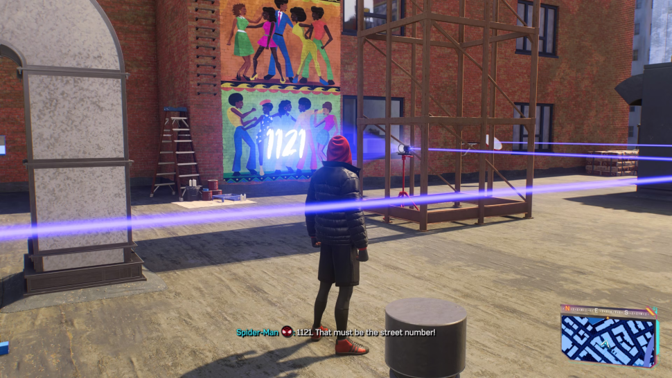 Снова прибегнув к помощи Хейли, отправьте Майлза в следующее место в Нью-Йорке, окруженное очень красивыми произведениями искусства и фресками. Начните с перемещения источника светового луча так, чтобы он попал в следующее зеркало на другой стороне.