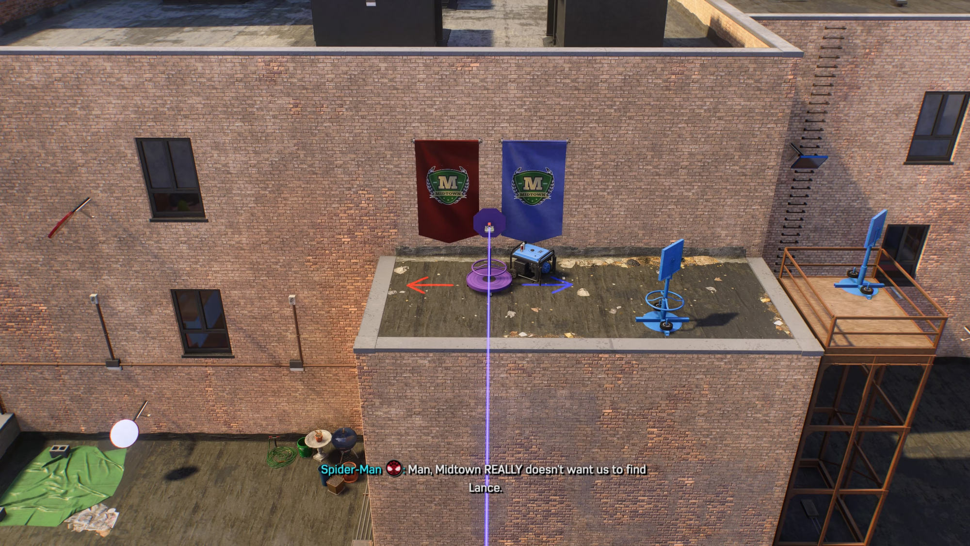 В начале Marvel's Spider-Man 2 Майлз вернется к своей реальной жизни в качестве студента BV, и это также станет поводом для того, чтобы некоторые студенты обратились за помощью через приложение Friendly Neighborhood Spider-Man. Один из таких случаев - выходка старшеклассников, в результате которой талисман Лэнса забирают из школы Мидтауна, и решить эту проблему можно только с помощью сообразительности Майлза.