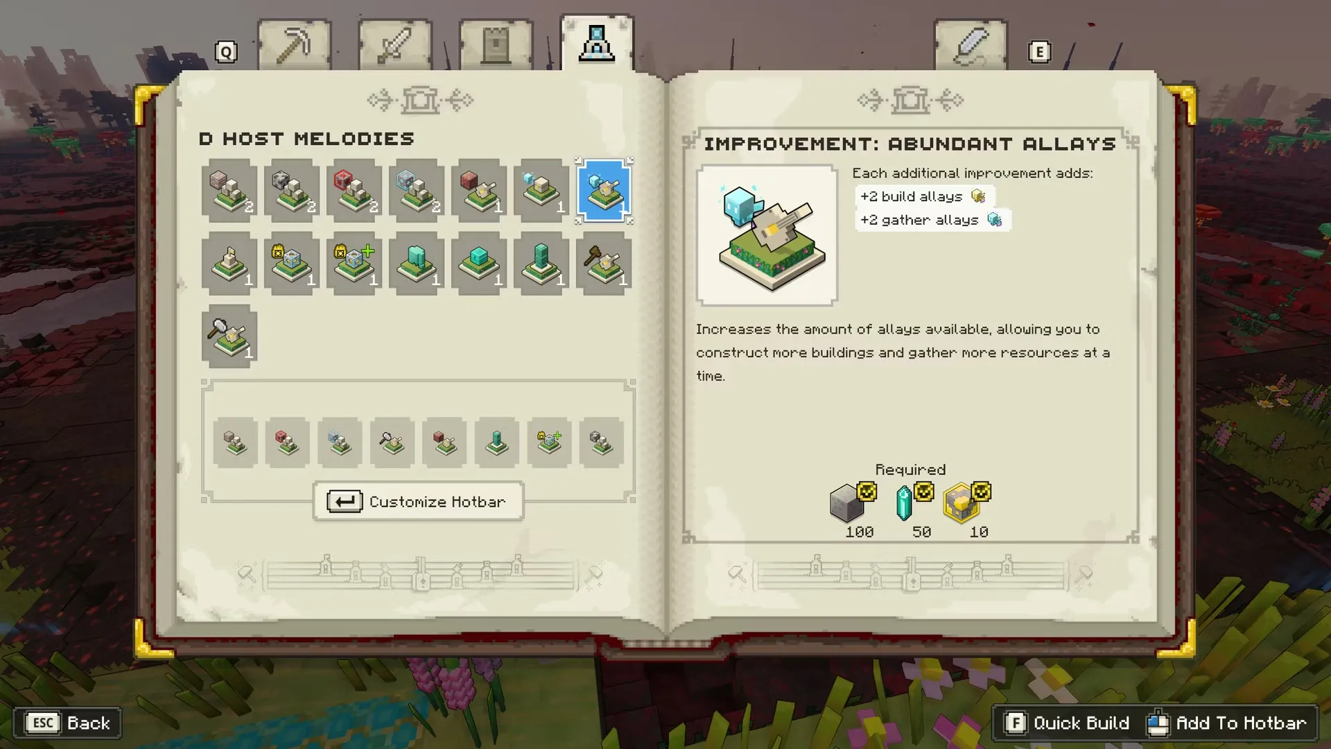 Первый и самый простой способ получить больше Allays - это построить башню улучшения Abundant Allays в своем Колодце судьбы. Хотя некоторые башни улучшений в Minecraft Legends могут быть довольно дорогими, башня "Abundant Allays" стоит всего 100 камней, 50 призмаринов и 10 золота, и каждая из них дает +2 Allays на строительство и +2 Allays на сбор.