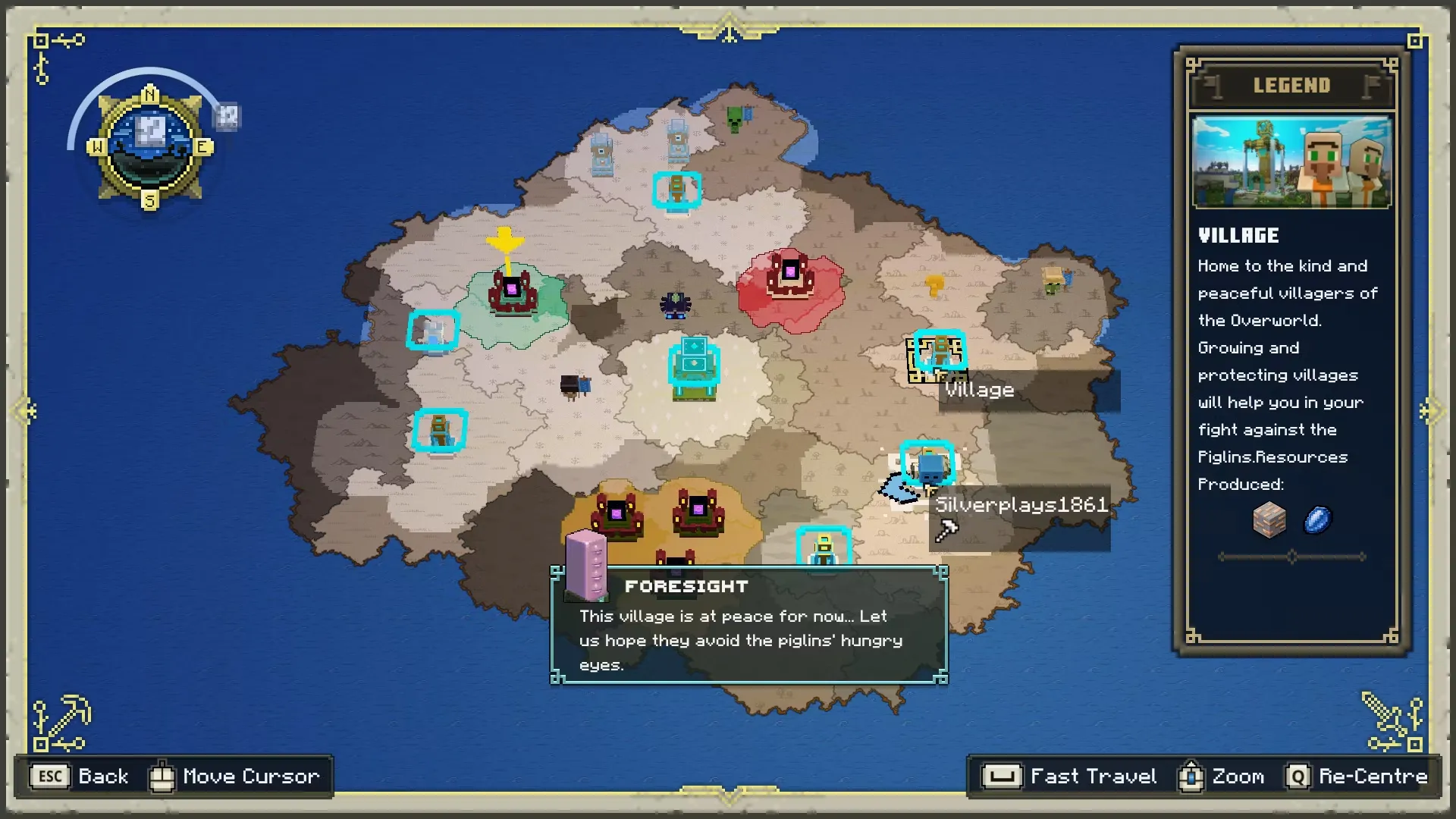На карте мира игроки могут навести курсор на деревню, чтобы увидеть, какой специальный ресурс собирает эта деревня; это может быть уголь, железо, алмаз или красный камень. Как правило, для каждого ресурса, созданного в World Generation, существует по крайней мере одна деревня, поэтому игрокам, нуждающимся в определенном ресурсе, вряд ли будет трудно его найти.