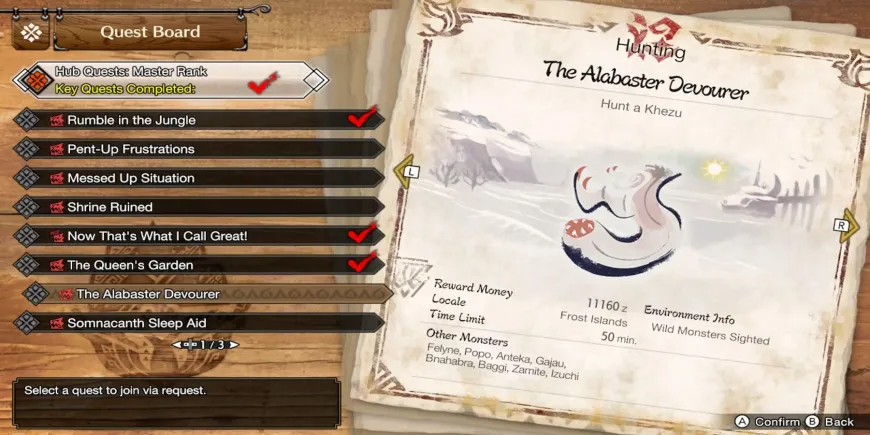 Чтобы фармить кхезу ранга мастера, лучше всего подойдет квест 2 звезды ранга мастера "Алебастровый пожиратель". В этом квесте игроки должны выследить или захватить кхезу на Морозных островах. Имейте в виду, что в окрестностях будут бродить другие монстры, которые могут помешать продвижению.