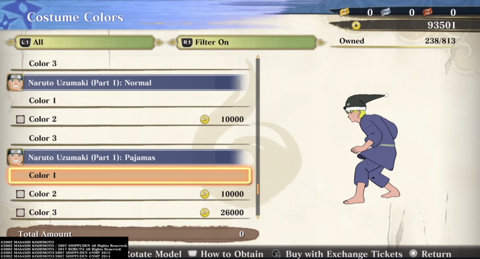 - Находясь в разделе "Цвета костюмов", нажмите R1/R/All Characters и выберите Naruto Uzumaki.