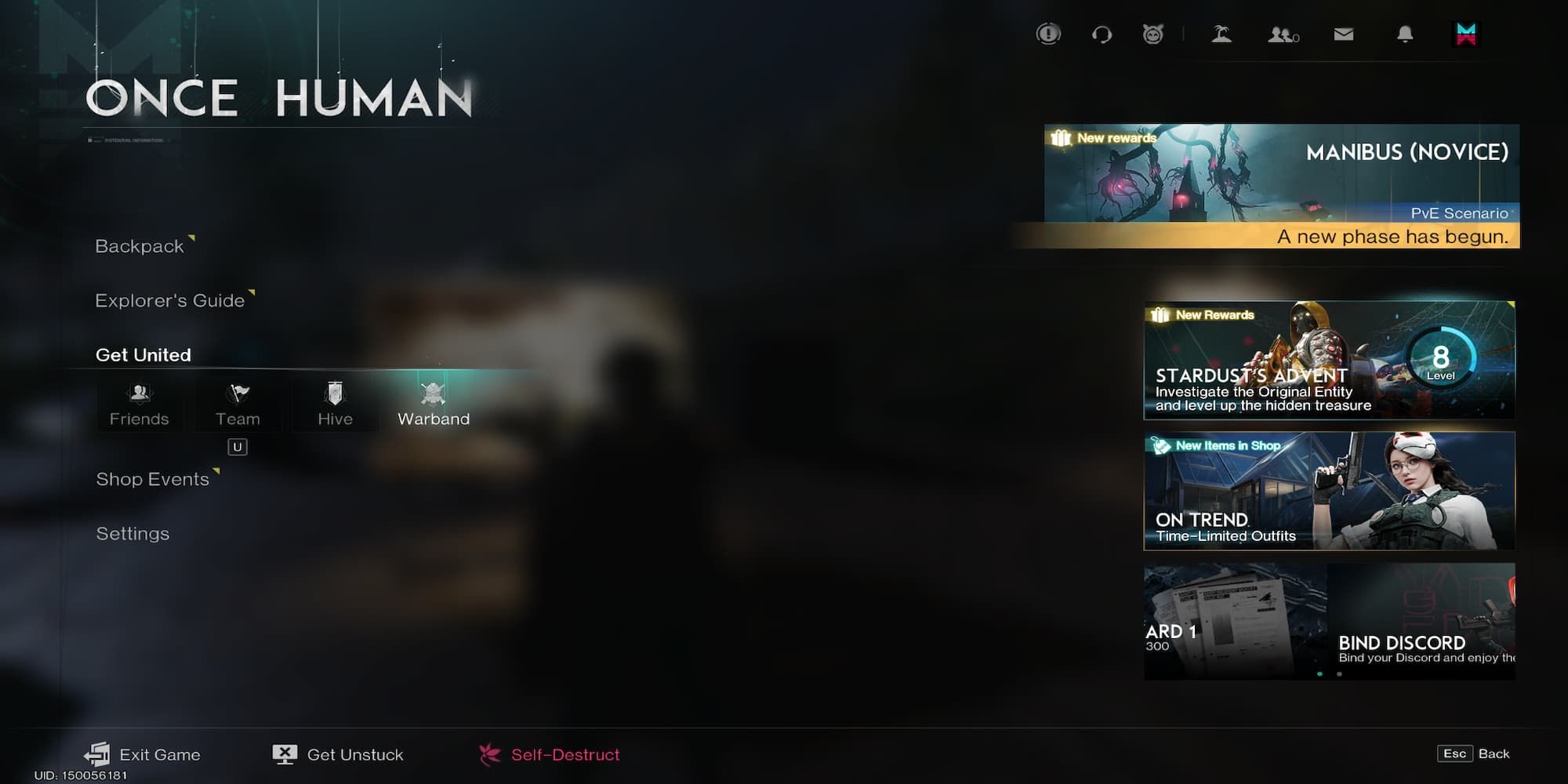 Когда игроки углубляются в игру и хотят объединиться с союзниками и принять участие в PVP, они могут вступить в варбэнд. Варбэнды похожи на кланы в Once Human и также предлагают игрокам уникальные занятия, поскольку разные варбэнды сражаются за ресурсы.