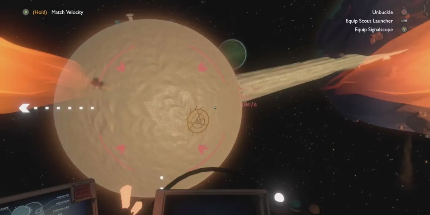 Одно из таких мест, которое может понадобиться игрокам в Outer Wilds, - солнечная станция. Станция находится на орбите вокруг солнца, и добраться до нее не так просто, как кажется. Теоретически игроки могут посадить свой космический корабль прямо на Солнечную станцию, и любители завершить игру могут даже заинтересоваться этой попыткой, поскольку достижение "Hotshot" можно получить только таким образом. Однако сделать это крайне сложно, учитывая иногда сложное управление космическим кораблем и частую орбиту станции. К счастью, есть более простой способ добраться туда.