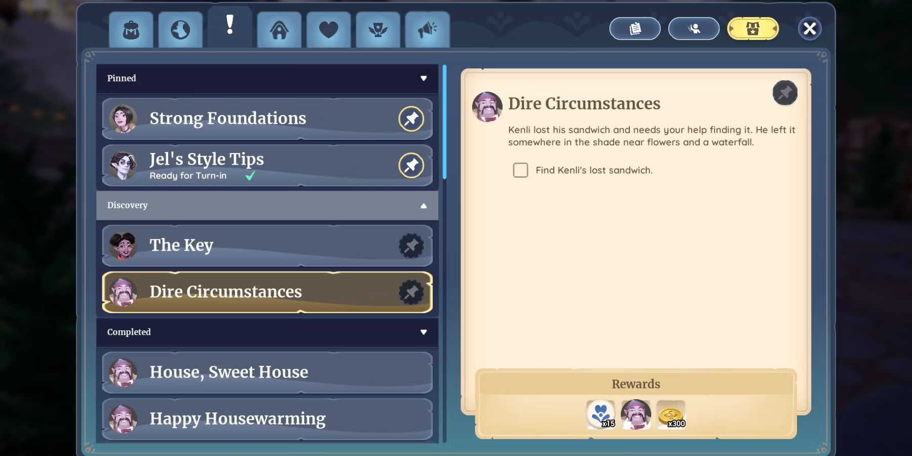 Как начать выполнение квеста "Тяжелые обстоятельства" по поиску пропавшего бутерброда в Palia
