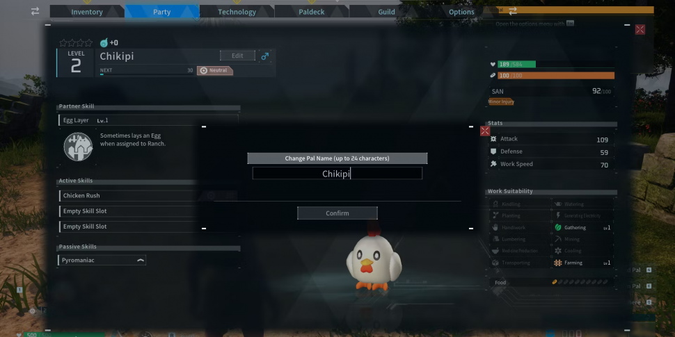 У каждого питомца в Palworld есть имя по умолчанию, как у популярных Лифмунка или Чикипи. Несмотря на то, что изначально у них были милые и приятные имена, некоторые игроки могут обнаружить, что хотят дать своим палам уникальные имена, особенно тем, которые были у них с самого начала и с которыми они уже успели сблизиться.