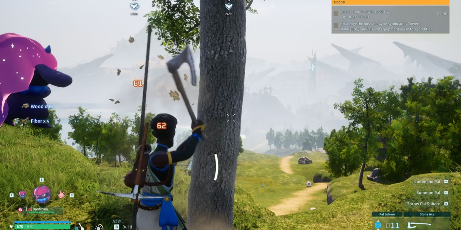 Древесина - чрезвычайно важный и, пожалуй, главный ресурс, который понадобится вам в самом начале и на протяжении всей игры. Без этого распространенного материала вы не сможете создать практически ничего, ведь из него состоит даже дрянная кровать и примитивный верстак, поэтому вам следует как можно быстрее узнать, как добыть древесину в Palworld. Как мы уже говорили, это базовый материал, поэтому добыть его несложно, но все же стоит рассказать о некоторых нюансах и подсказках.