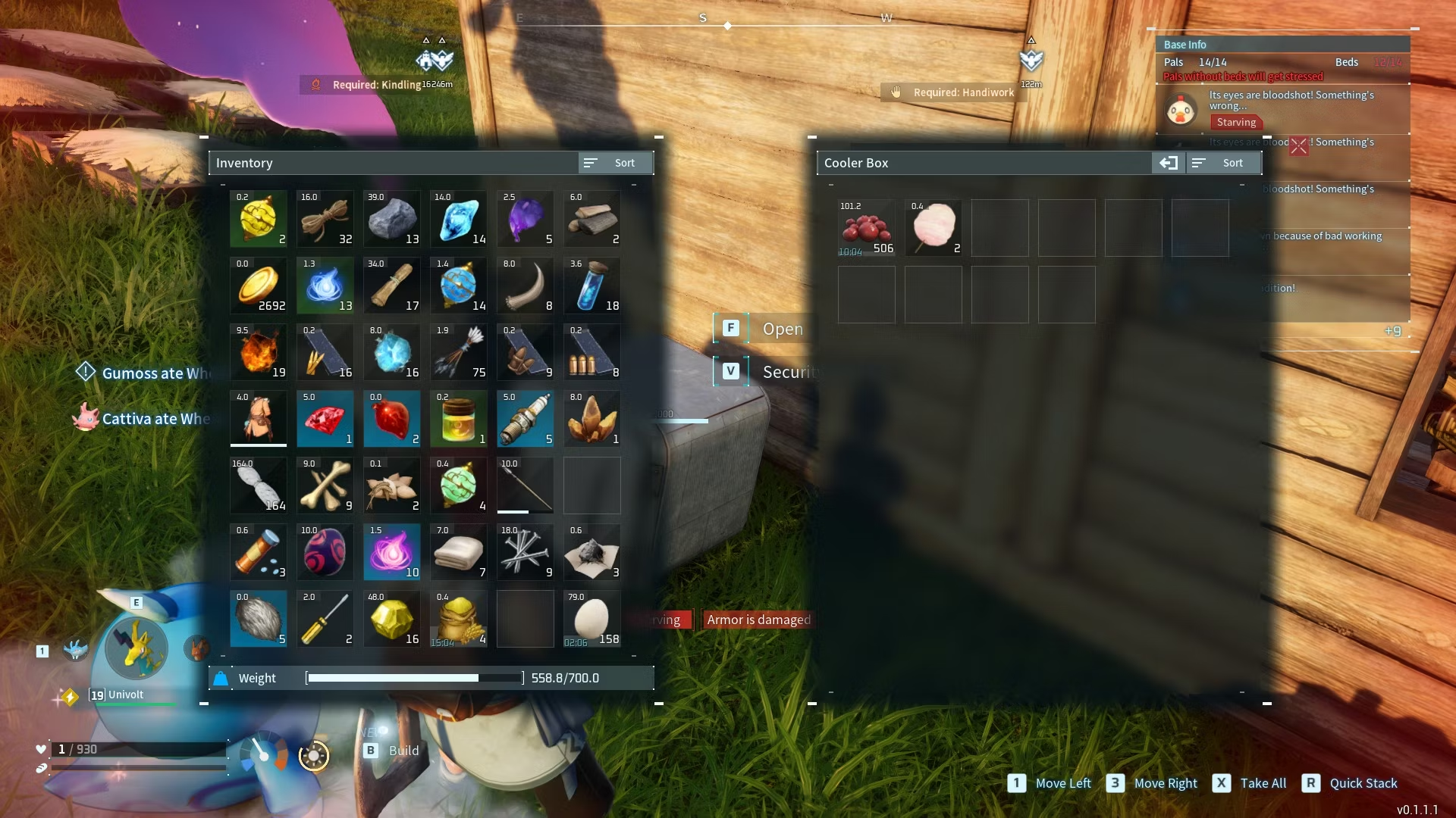 Palworld - это игра на выживание со всеми атрибутами. Помимо строительства базы и врагов, которых нужно победить в погоне за продуктивной жизнью, у вас есть потребности, о которых нужно заботиться - особенно важен голод. Счетчик голода есть не только у вас самих, но и у ваших питомцев, которые работают на базе и состоят с вами в одной команде.