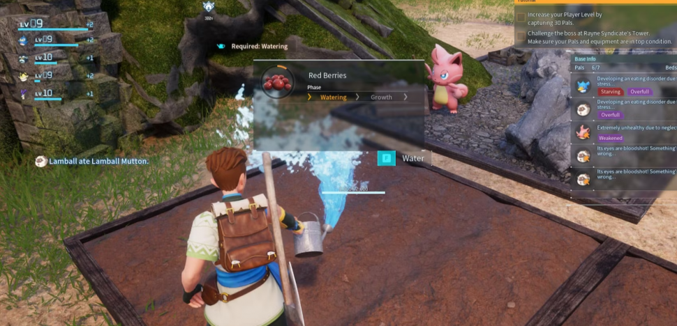 Исследуя мир, игроки могут ловить различные виды палов, которые играют важную роль в игре. Каждый пал может выполнять различные задачи, включая фермерство, сбор урожая, полив и лесозаготовку - все это необходимо для сбора необходимых ресурсов и строительства базы. Чтобы они были счастливы и работали, их необходимо кормить.