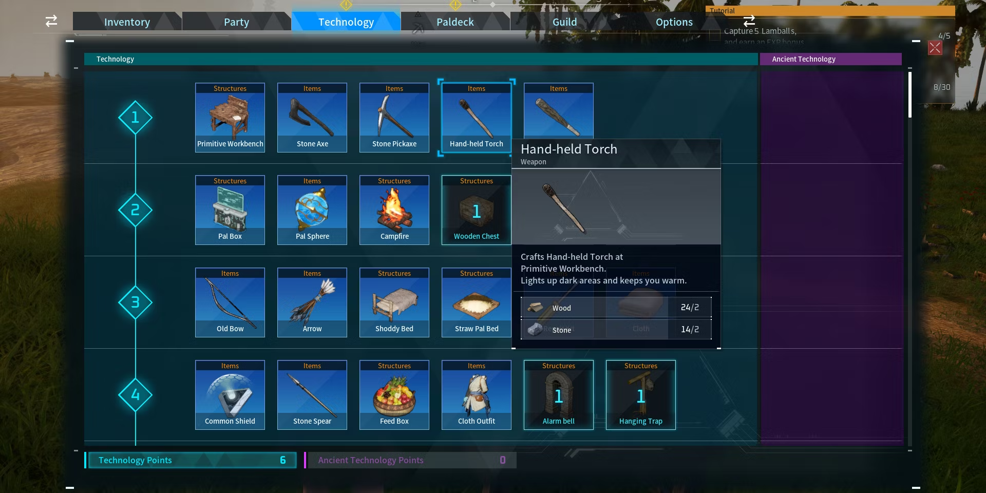Начав свое приключение по Палворлду, вы заметите, что здесь есть множество различных зданий и предметов, которые можно создавать. Немного поискав дерево и камень, вы сможете посетить раздел "Технологии" в главном меню. Здесь вы сможете открыть новые рецепты, среди которых есть и такие, которые помогут вам согреться: