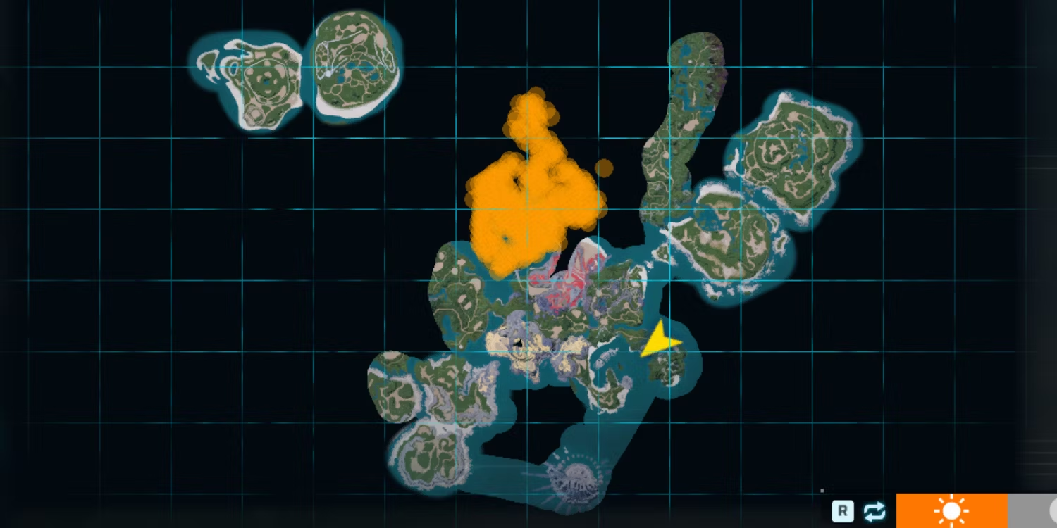 Если вы хотите добыть как можно больше семян салата, вам нужно отправиться в местность, где часто спавнятся перечисленные выше палы. К счастью, есть одна локация, где в изобилии водятся и Cinnamoth, и Bristla, что делает ее идеальным местом для охоты за семенами салата. У Cinnamoth есть большое место обитания в центре карты мира Palworld, где они будут появляться очень часто. В этом месте обитания также много Бристлы, что позволит вам охотиться сразу на оба вида и даст вам максимальный шанс получить семена салата - только не забудьте взять с собой хорошую команду палов и пачку сфер палов, чтобы не заблудиться. Точное местоположение вы можете посмотреть на скриншоте карты ниже, где эта среда обитания обозначена оранжевыми метками.