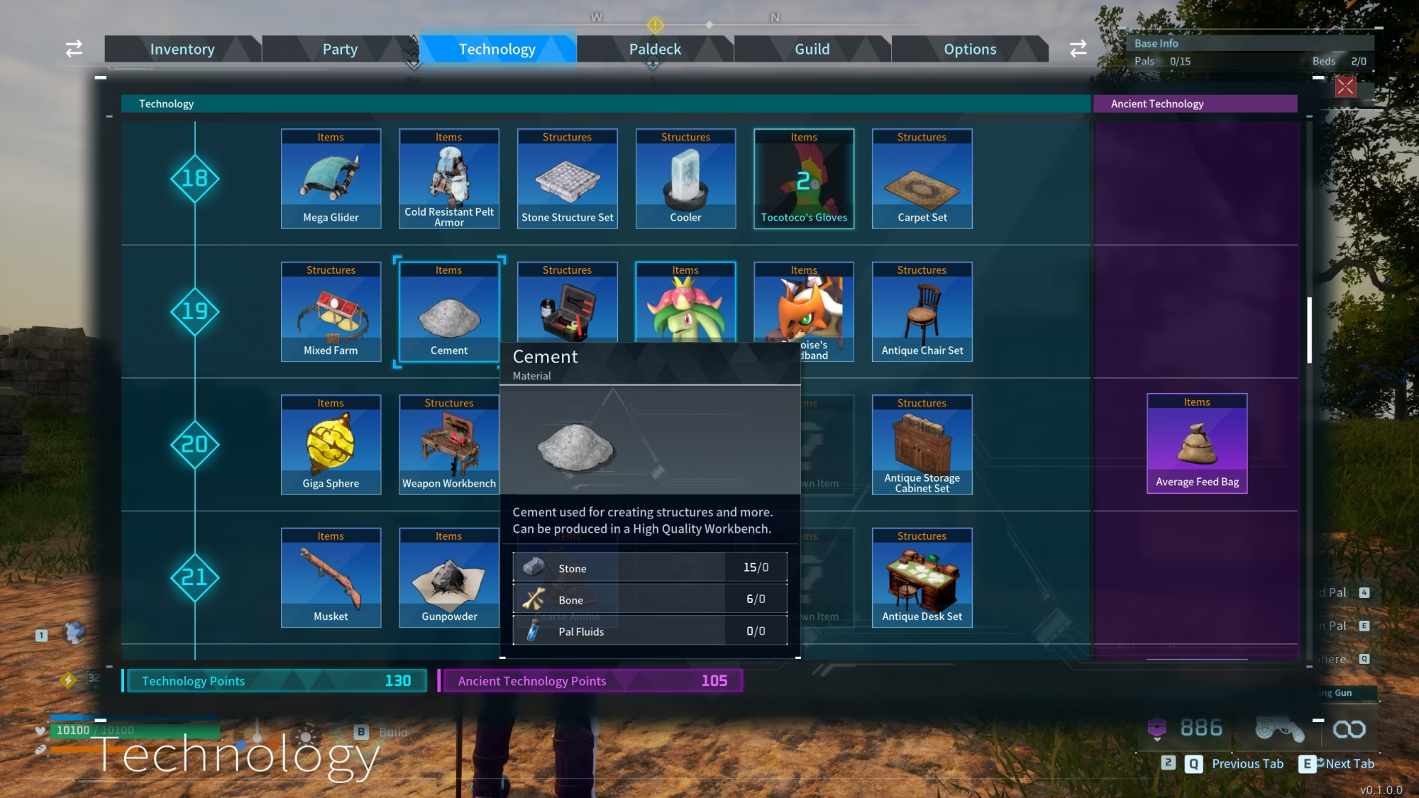 Вы можете легко разблокировать цемент в меню "Технологии" на 19-м уровне, но для его изготовления вам понадобится соответствующий верстак и нужные материалы.