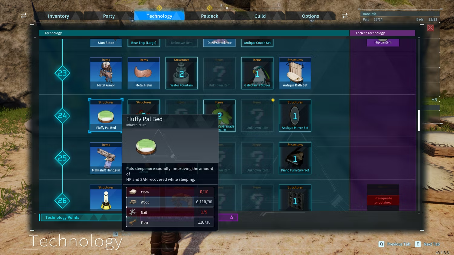 Чертеж "Пушистая кровать" открывается на 24-м уровне, а значит, по мере роста уровня вам придется обходиться соломенными кроватями. Если вам не терпится поскорее подняться в Palworld, попробуйте поймать 10 всех найденных вами палов, чтобы получить щедрую порцию дополнительных EXP. Когда вы достигнете 24-го уровня, убедитесь, что у вас есть свободные Очки технологий, чтобы разблокировать чертеж.
