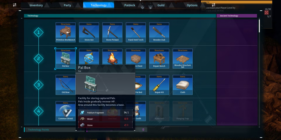 Чтобы создать базу, единственное, что вам понадобится, - это палбокс. Этот рецепт станет доступен вам, как только ваш персонаж достигнет 2-го уровня. Его можно найти в разделе "Технология" в главном меню, а разблокировать его можно с помощью 1 очка технологии. Помните, что после того, как вы установите свой ящик и базу, это будет главный центр, где вы будете заниматься сельским хозяйством и ремеслом, а также спать вместе со своими палами.