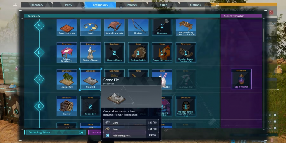 По мере продвижения в Palworld вы сможете открывать новые чертежи, которые позволят вам значительно улучшить свою базу, и одним из таких чертежей является Каменный карьер. Благодаря этому сооружению вы сможете значительно оптимизировать добычу камня, превратив ее в пассивный процесс и сэкономив время на добыче этого ресурса.