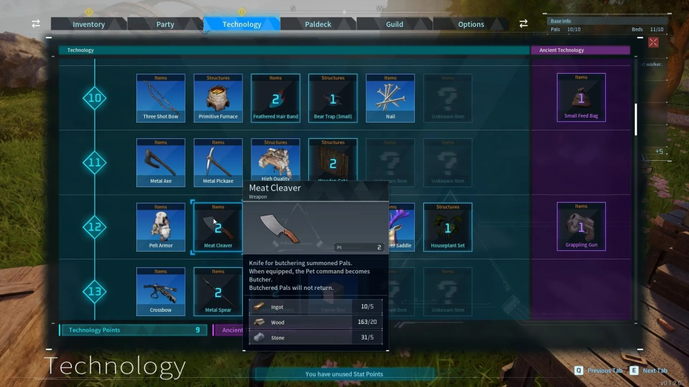 Поймав палов в Palworld, вы не сможете выпустить их обратно в дикую природу. У вас есть два варианта действий с ненужными палами: либо продать их, либо разделать, чтобы получить ресурсы. Продавая их, вы получаете золото, а разделывая - материалы. Чтобы разделать пал, сначала нужно изготовить мясорубку, которая открывается на вкладке "Технологии" на 12-м уровне.