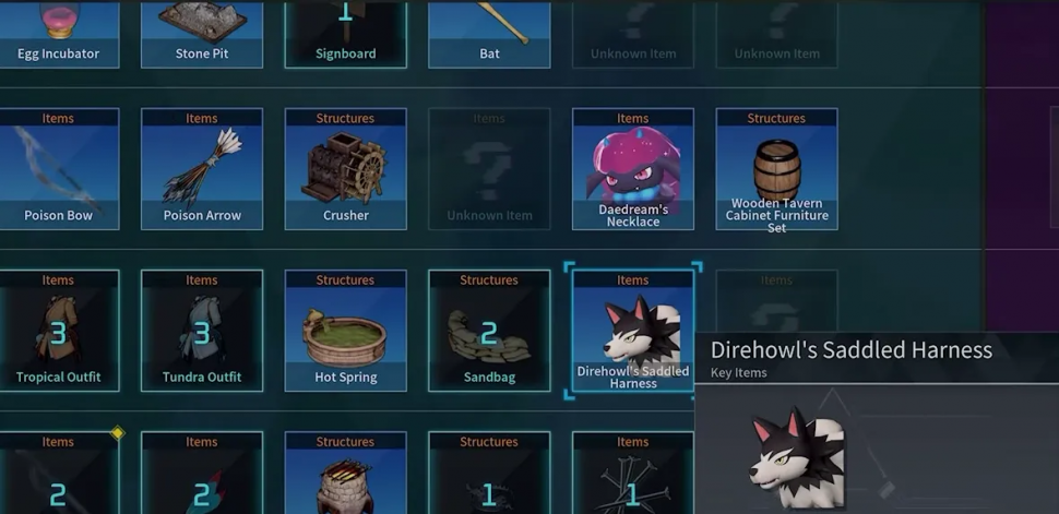 Конкретное снаряжение Pal Gear зависит от маунта. Например, для Direhowl требуется Direhowl's Saddled Harness.