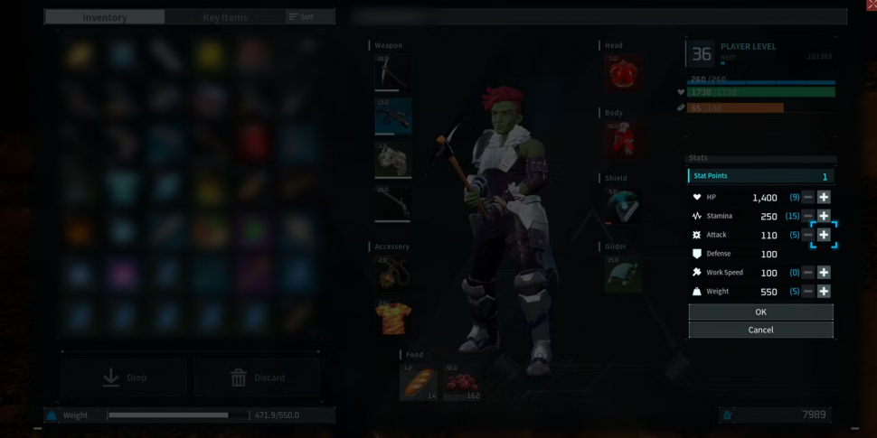 Статы в Palworld поначалу могут быть немного запутанными, особенно если учесть, что каждое очко статов влияет на них в разной степени. Здоровье увеличивается на 100 очков, атака - на жалкие 2, а вес - примерно на 50 фунтов за очко. Учитывая, что Palworld - это игра на выживание, а не коллекционирование существ, распределение статов действительно имеет значение. К счастью, игроки нашли способ переквалифицироваться с помощью Машины стирания памяти на поздних этапах игры, но это доступно только примерно до 43-го уровня, и вы должны быть абсолютно уверены, прежде чем тратить очки статов.