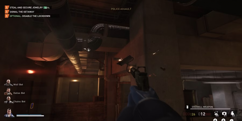 Внутри шоу-рума в запертых витринах можно найти больше свободных драгоценностей и роскошных украшений - правда, при этом сработает сигнализация и заблокирует все более ценное. Чтобы забрать добычу, игрокам придется найти способ обойти запертые на PIN-код двери подвала и отключить блокировку в подвальном хранилище.