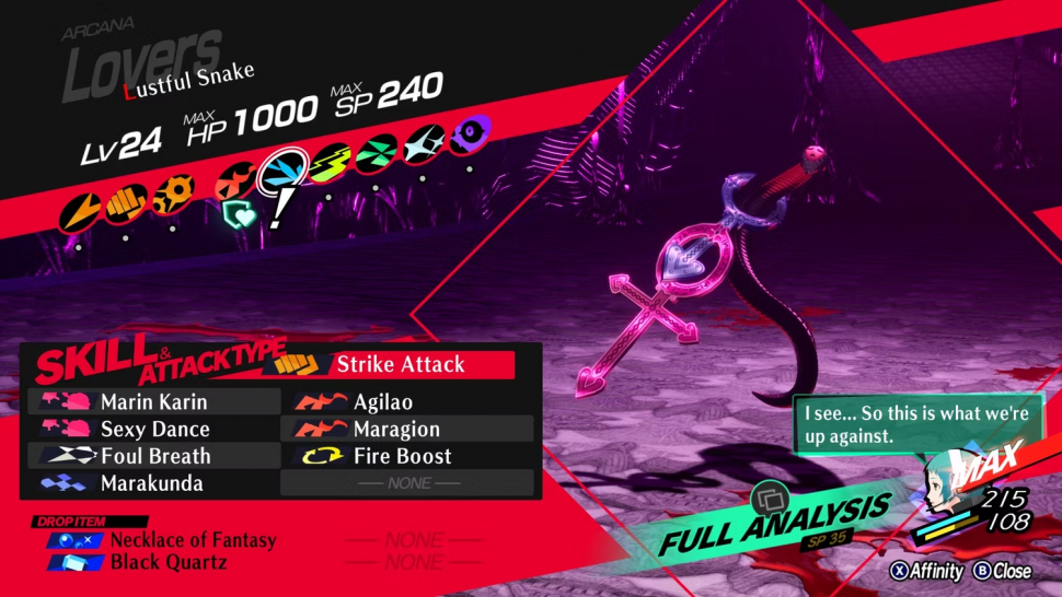 В частности, похотливая змея - это грозная тень на этажах с 55 по 67. Она уязвима для льда, поэтому бейте ее два-три раза ледяными атаками, чтобы получить достаточное количество атак All-Out Attacks для ее уничтожения. Похотливые змеи не всегда роняют черный кварц, но после победы над двумя или тремя из них у вас должен быть хотя бы один драгоценный камень.