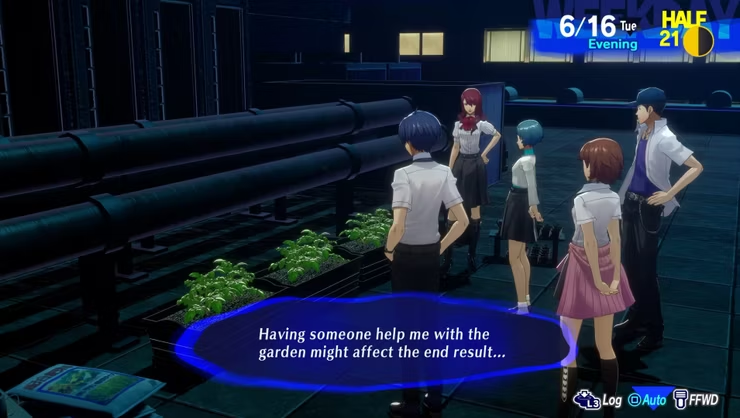 Новинкой Persona 3 Reload стала возможность проводить вечернее свободное время за садоводством с товарищами по команде SEES, когда вы вернетесь в общежитие. Вы поймете, что они хотят пообщаться, если у них над головой появится синий смайлик.