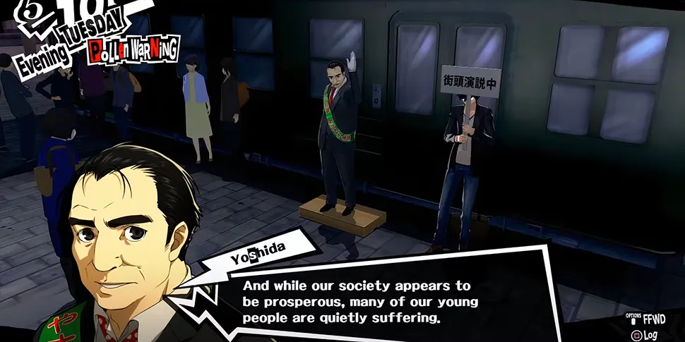 Также важно помнить, что с наступлением 13 ноября Ёсида завершает свою политическую кампанию и перестаёт быть доступным для взаимодействия. Это делает его одним из немногих конфидантов с жёстким временным ограничением. Если к этому моменту вы не достигли максимального ранга, завершить его социальную связь будет невозможно до следующего прохождения.