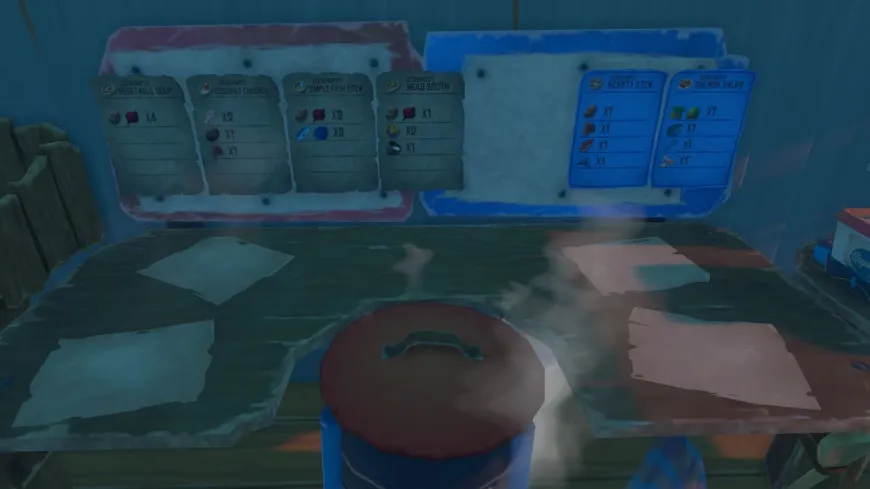 Однако, готовя еду на гриле, игроки упускают возможность. Это связано с тем, что все продукты, которые игроки могут приготовить на гриле, могут также использоваться в различных рецептах приготовления пищи в котелке, а еда в котелке настолько заполняет все пространство, что добавляет бонусную область к шкале еды. Некоторые рецепты торговых постов даже дают временные бонусы. Но чтобы попасть в варочный котел, все ингредиенты должны быть сырыми.