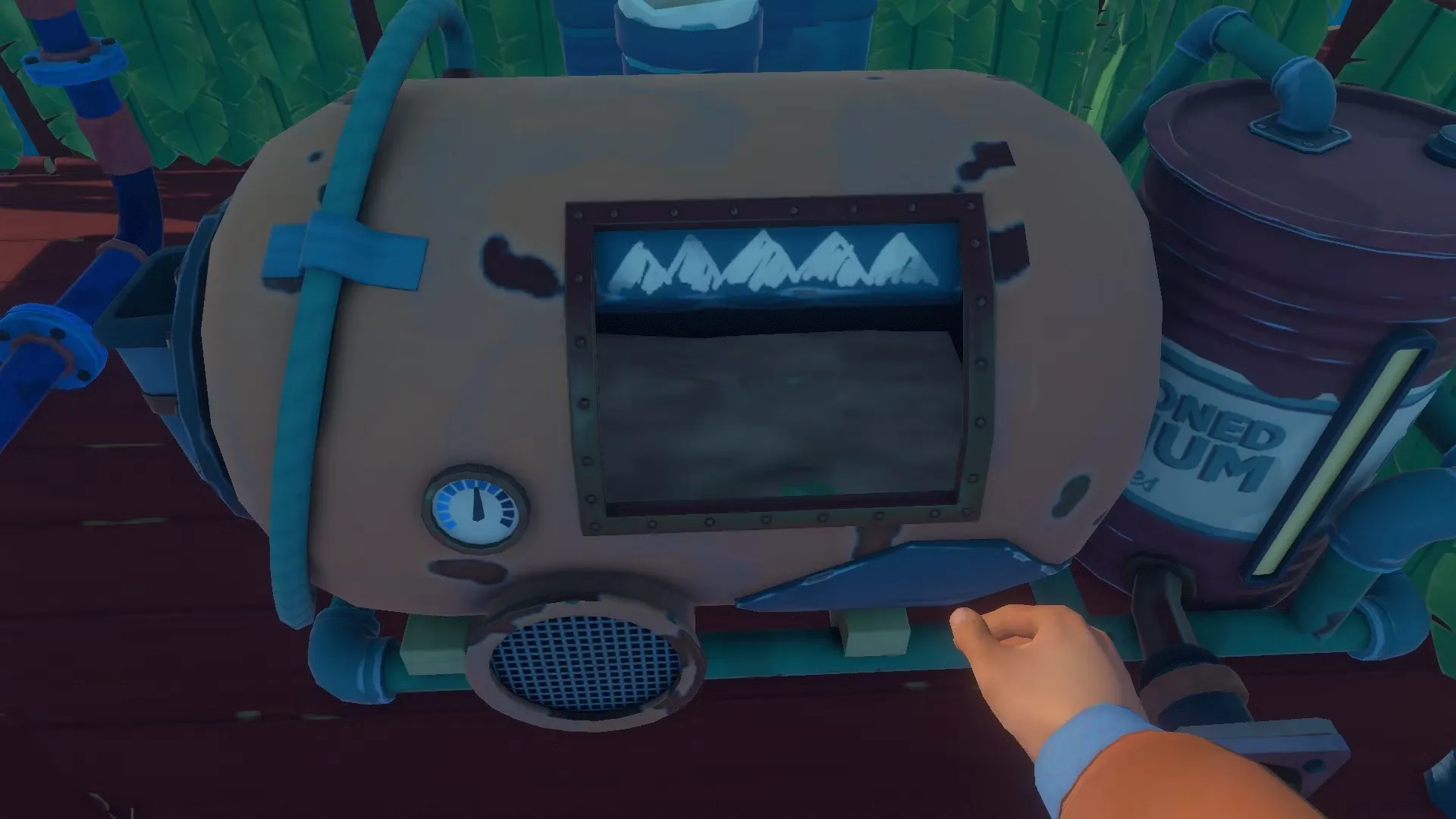 В этом рафинере также есть бочка, которая наполняется биотопливом. Бочка вмещает до 6 единиц биотоплива, которое игроки могут собирать напрямую или отправлять к двигателям и бакам с биотопливом с помощью трубопроводной сети.