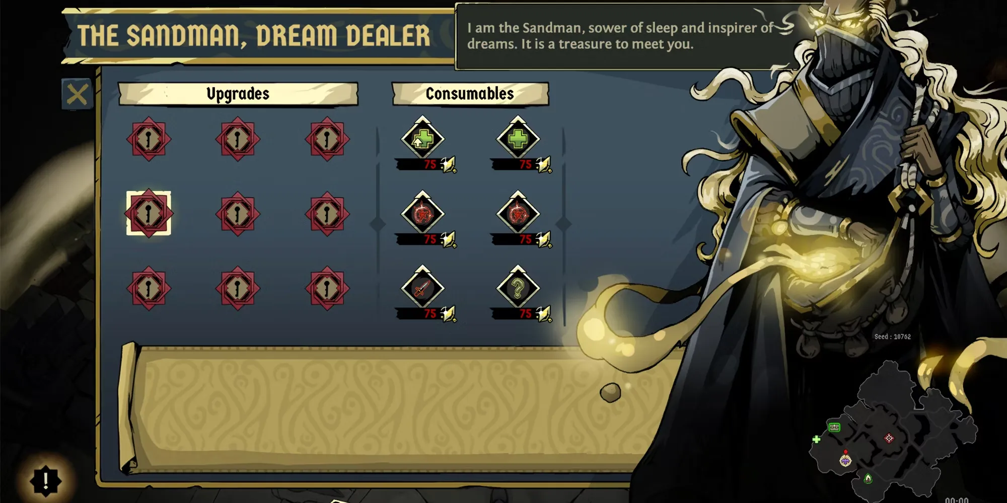 - Потратить их у торговца снами Сандмана, чтобы купить как улучшения, так и расходные материалы.