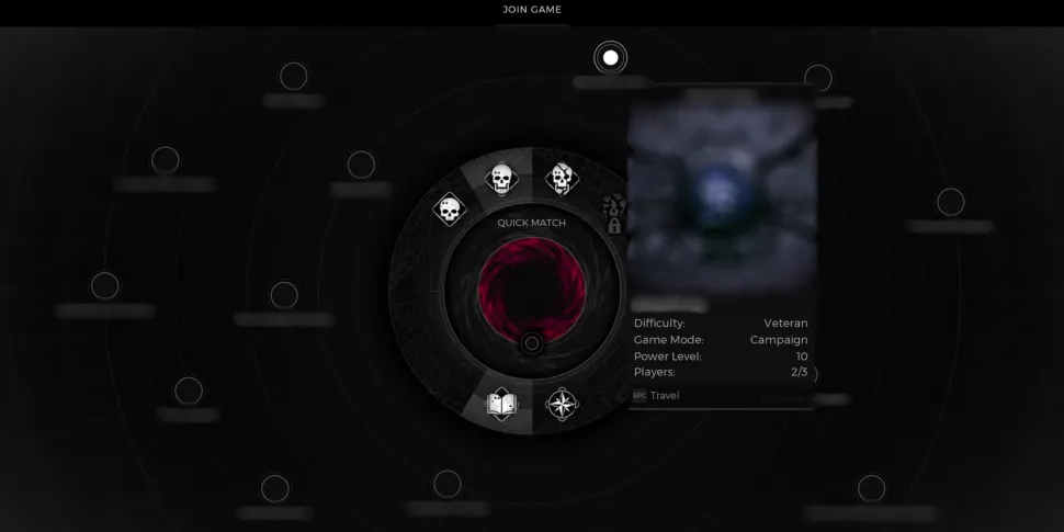 Что касается первого варианта - присоединения через Worldstone, то он довольно прост. По сути, как только игроки смогут присоединяться к лобби, они смогут получить доступ к этому меню, взаимодействуя с любым большим Мировым камнем (большинство игроков просто используют тот, что находится в Ward 13), и в нижней правой части радиального выбора Карты мира должна появиться опция "Присоединиться к игре".