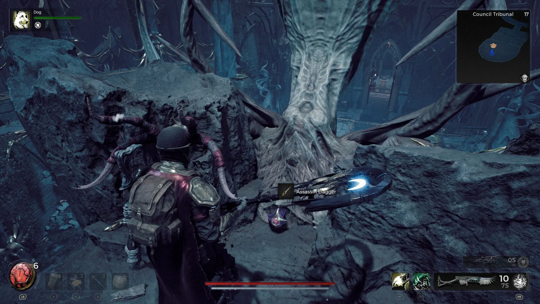 Игроки, ищущие кинжал ассасина (квестовый предмет), должны отправиться в подземелье Remnant 2 "Зал Совета" на Лосомне. На этой карте игроки найдут черное зеркало, которое перенесет их в Трибунал Совета, где есть головоломка, связанная с перемещением ключей. Решив эту головоломку, игрок получит доступ к большой каменной фигуре, в затылке которой находится квестовый предмет.