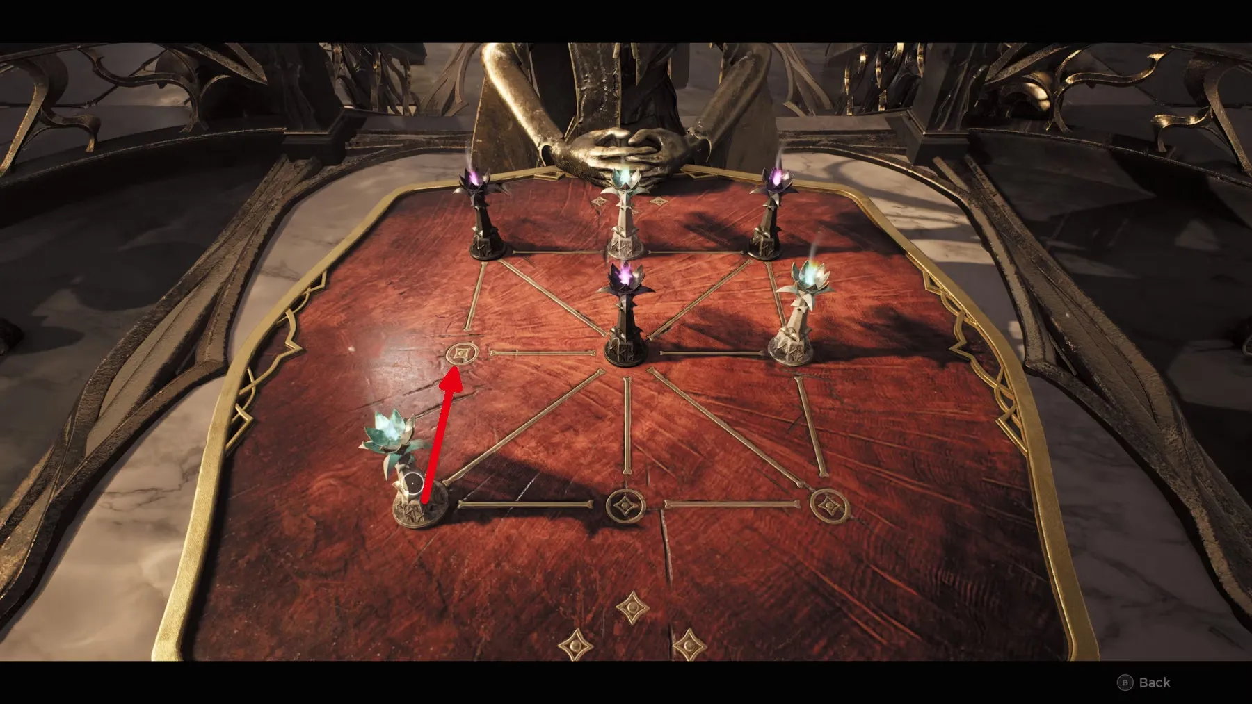 Чтобы получить доступ к комнате с комплектом королевских доспехов фейри, игроку нужно просто создать этот узор на доске с головоломками: