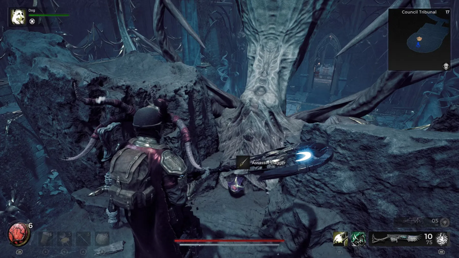 Зал Совета иногда представляет собой большую комнату со статуей на возвышении и картинами на стенах. В правой части этой комнаты есть картина, прислоненная к стене, разрушив которую, можно обнаружить скрытый путь, ведущий к Палачу. Победив этого босса Remnant 2, можно получить мутатор Steadfast Mutator (предотвращает прерывание атак ближнего боя и снижает урон на 10%), а выбравшись из его логова, игрок сможет подобрать оружие ближнего боя Ornate Flail и кольцо Sapphire Dreamstone.
