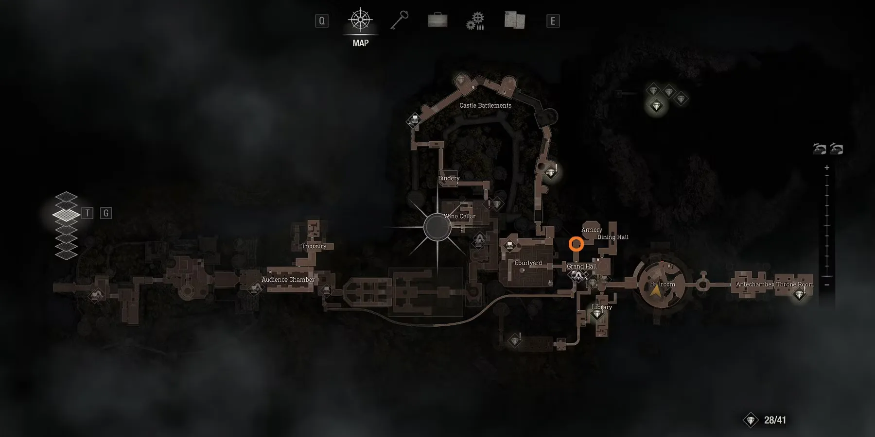 - В Тронном зале (Леон может попасть сюда только в главе 12 после того, как вернется в замок из глубин) - Содержит золотое куриное яйцо.