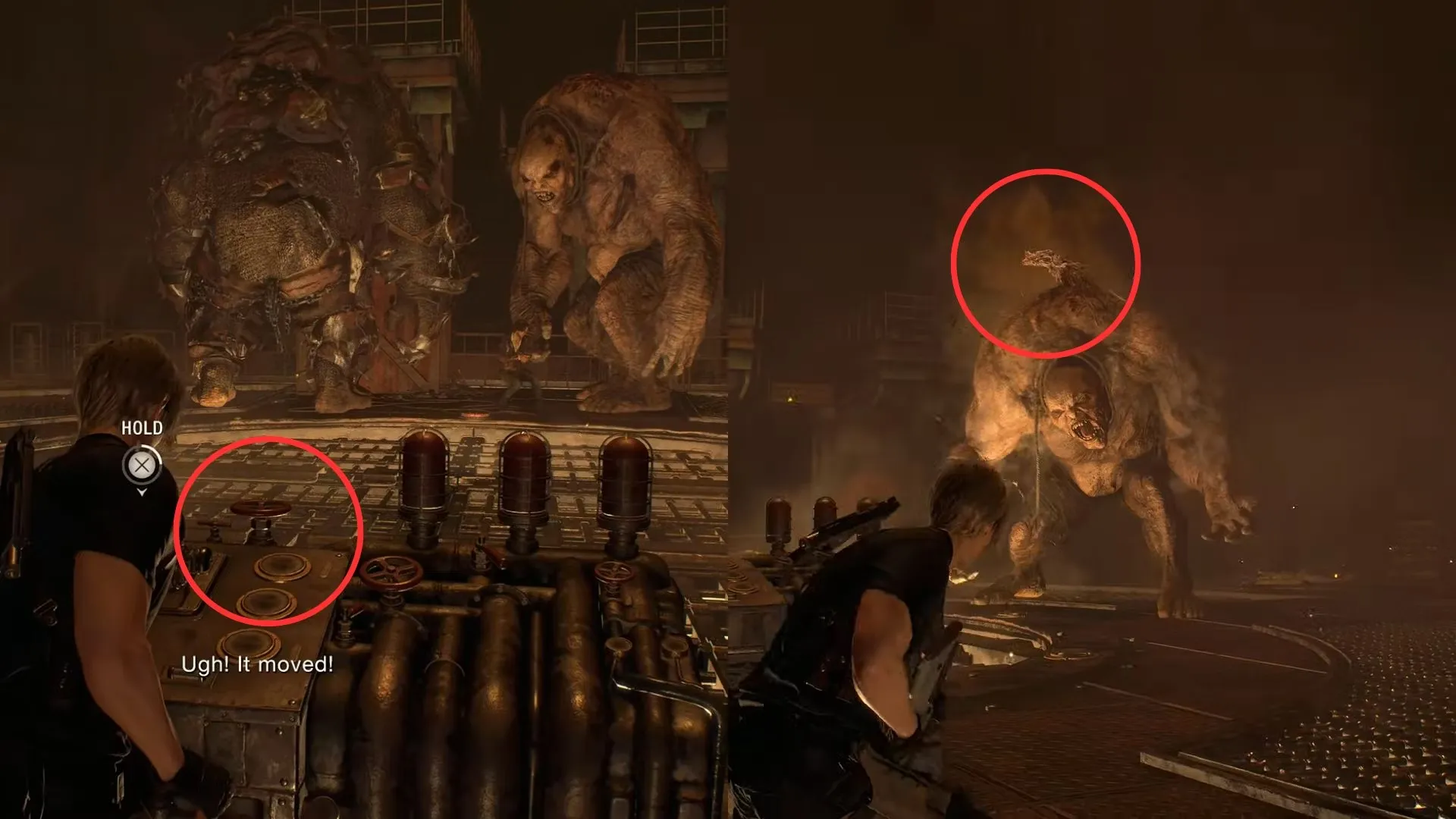 Победа над незащищенным Гигантом вызывает сцену, в которой Луис прикрепляет динамит к спине бронированного гиганта. Так его гораздо легче убить, потому что взрыв расколет его броню, обнажив Plagas.