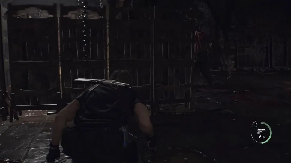 Хотя врага можно встретить и в других местах, это лучший момент для получения достижения и трофея из-за отсутствия других врагов. Быстро перейдите в следующую комнату с деревянными панелями, как только Леон вернет себе самообладание, и найдите место у края, чтобы спрятаться. Не высовывайтесь, когда существо войдет в комнату, и следите за свисающими цепями, которые могут насторожить Гаррадора.